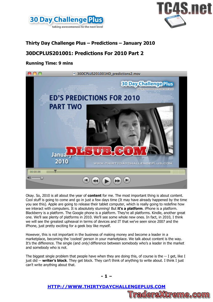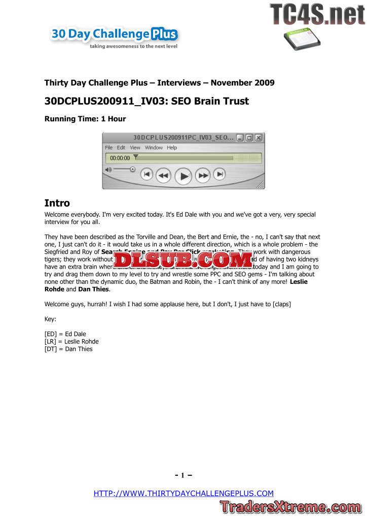 105 Thirty Day Challenge Plus Post 30dc Transcript - JPG Image File