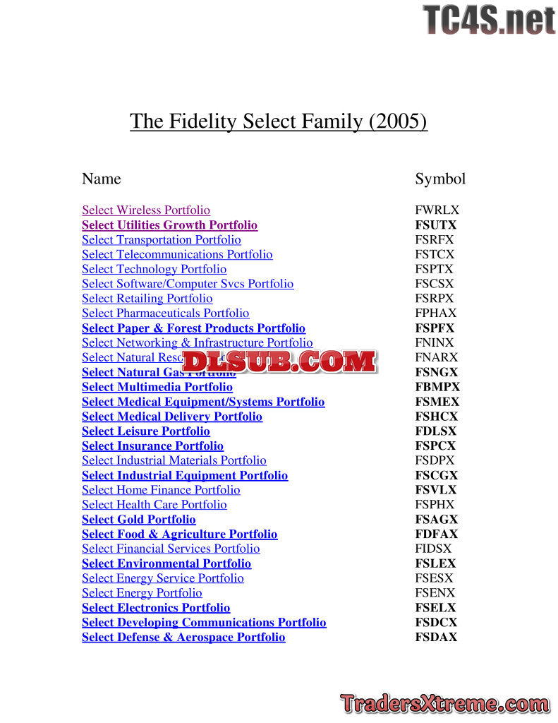 The Fidelity Select Family In 2005 - JPG Image File