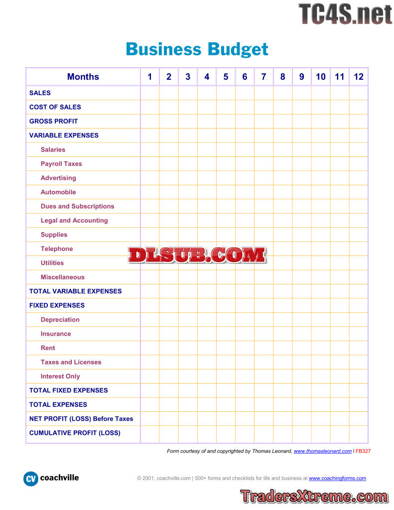 Annual Business Budget - JPG Image File