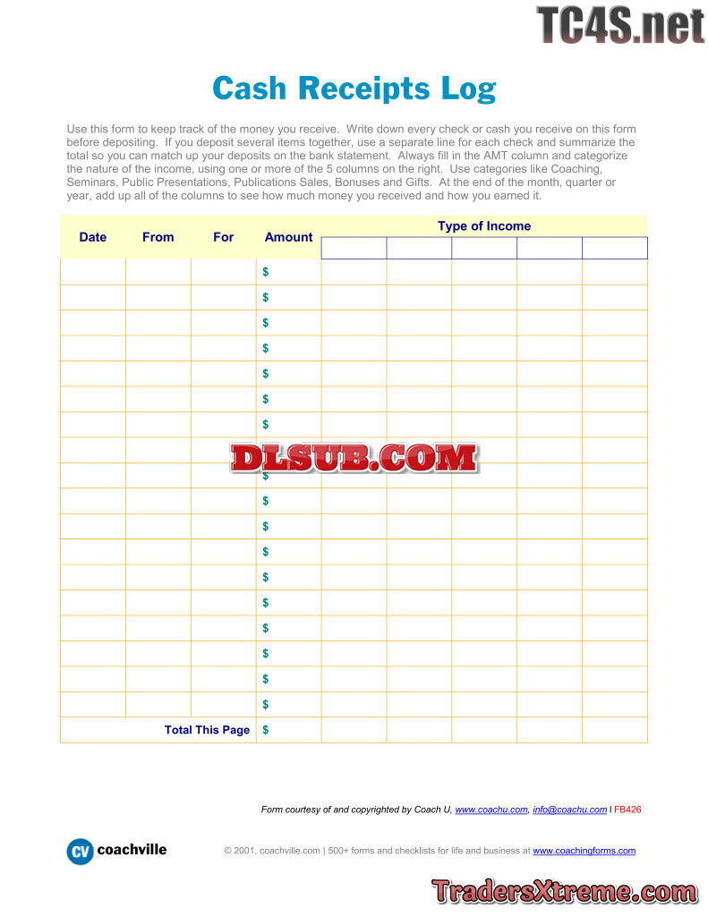 Cash Receipts Log - JPG Image File
