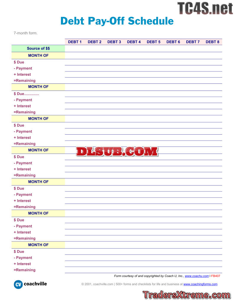 Debt Pay Off Schedule - JPG Image File
