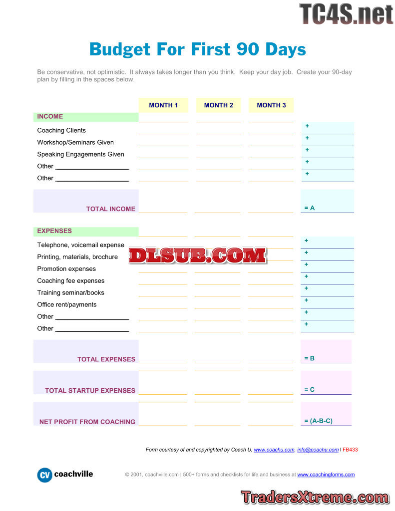 Income Expense Budget First 90 Days In Business - JPG Image File