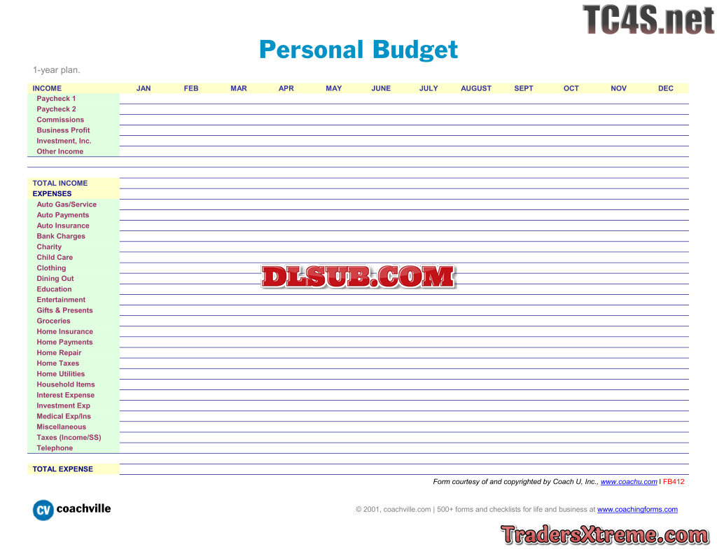 Personal Budget 1 Year Income Expense Projections - JPG Image File