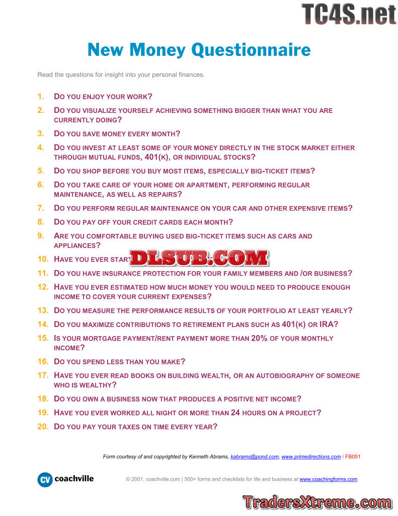Personal Finances Questionnaire - JPG Image File