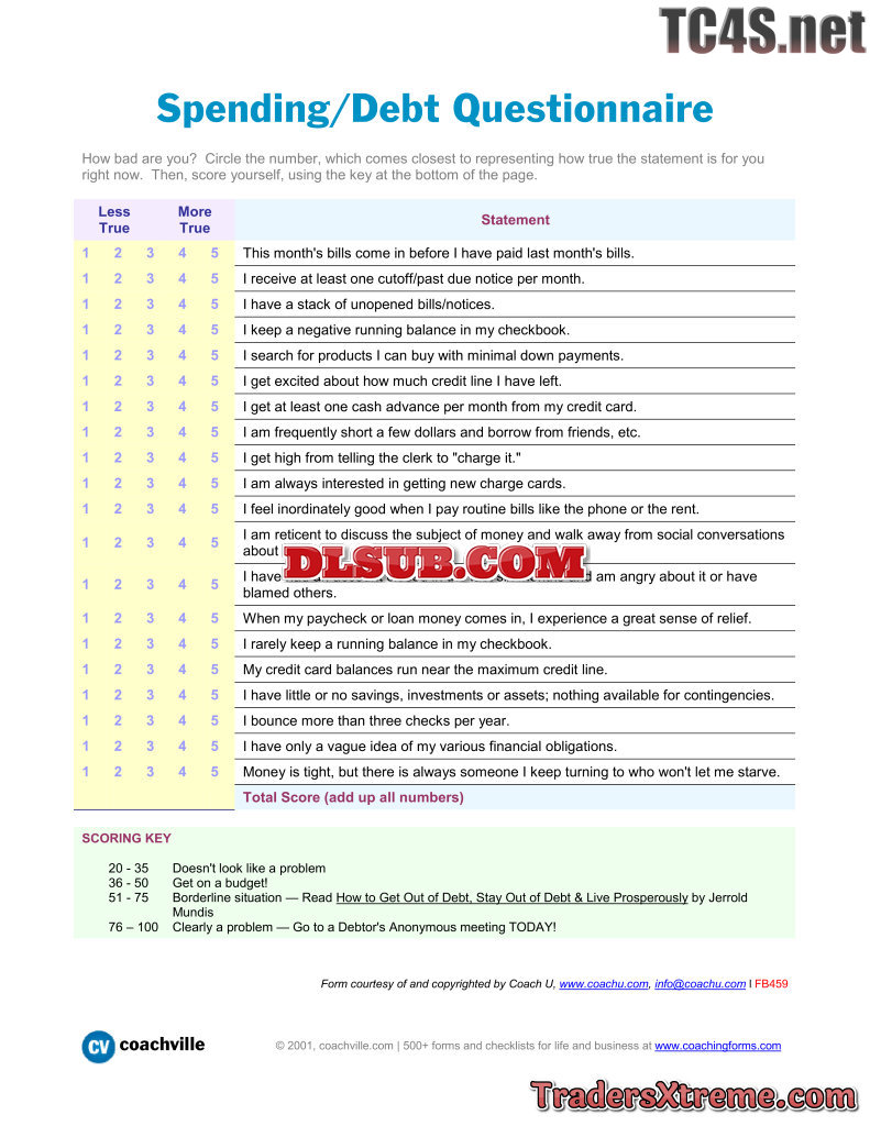 Spending Debt Questionnaire - JPG Image File
