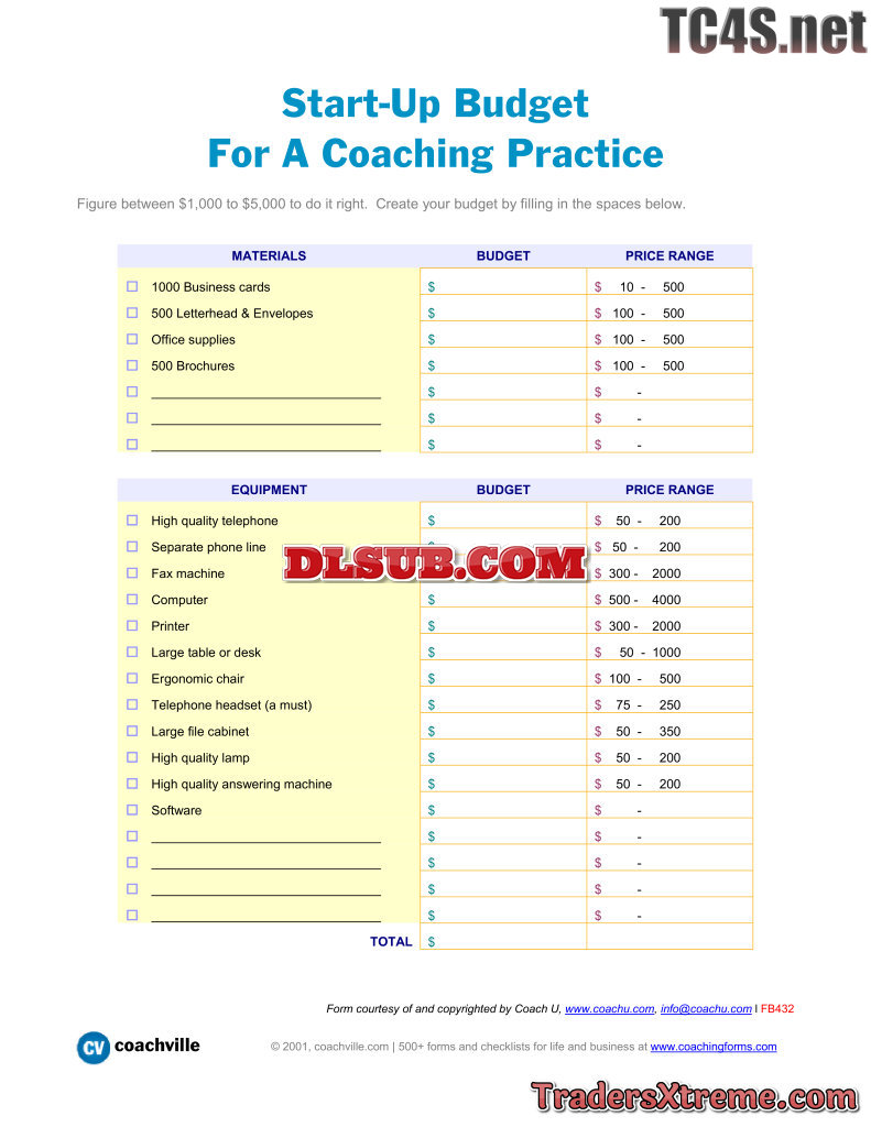 Start Up Budget For A Coaching Practice - JPG Image File