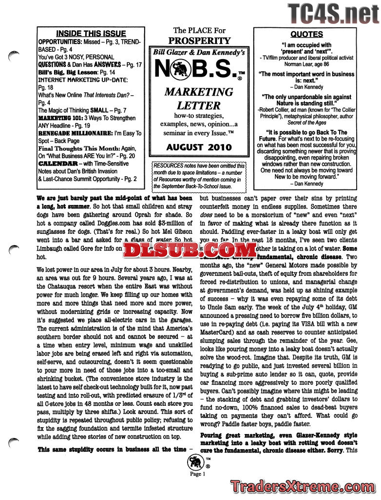 August No Bs Marketing Letter