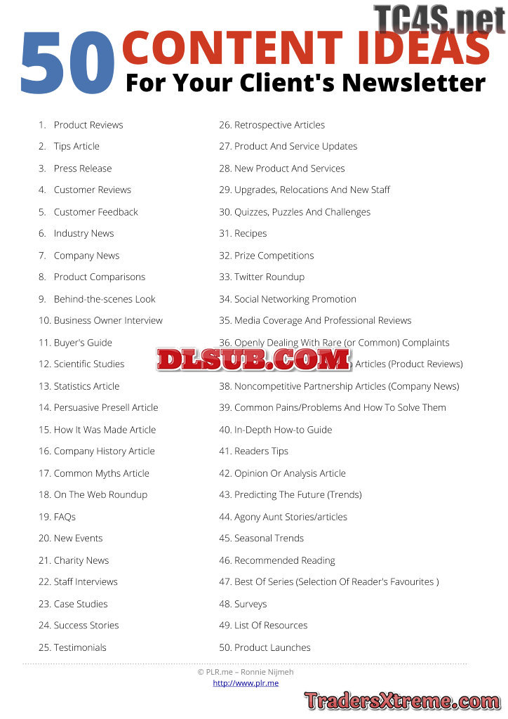 50 Content Ideas Cheat Sheet - JPG Image File
