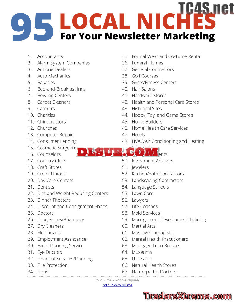 95 Local Niches For Newsletter Marketing - JPG Image File