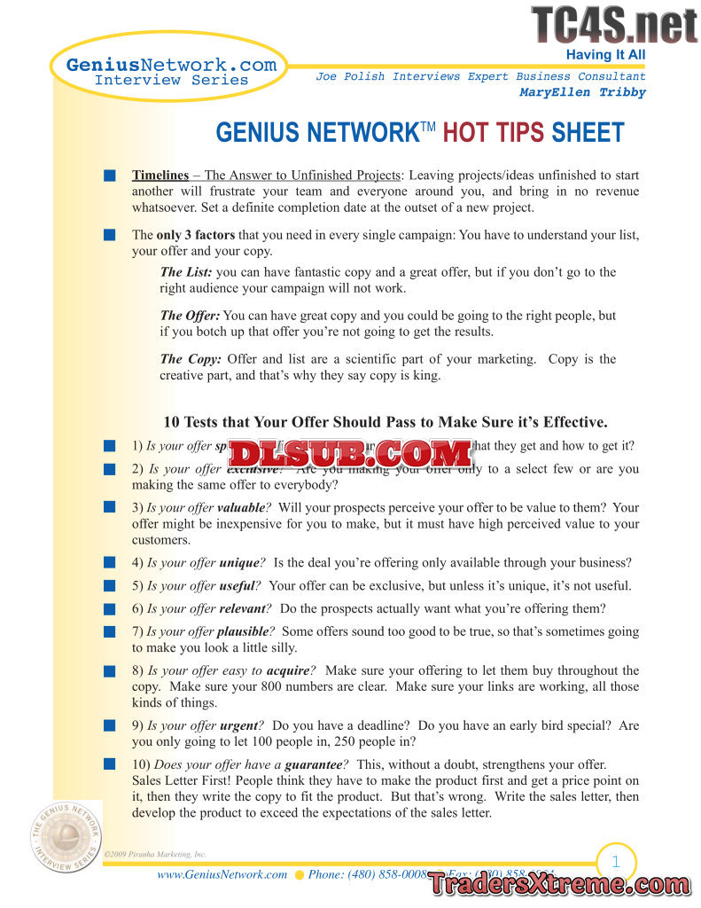Genius Network Hot Tips Sheet Maryellen Tribby - JPG Image File