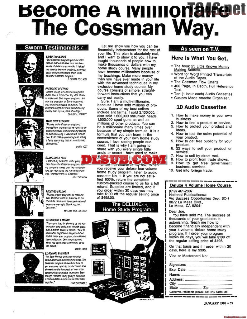 Become A Millionaire The Cossman Way Joe Cossman - JPG Image File