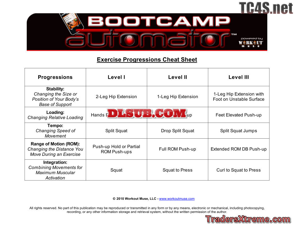 Exercise Progressions Cheat Sheet - JPG Image File