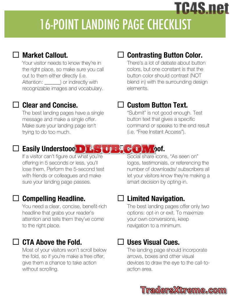Landing Page Checklist - JPG Image File