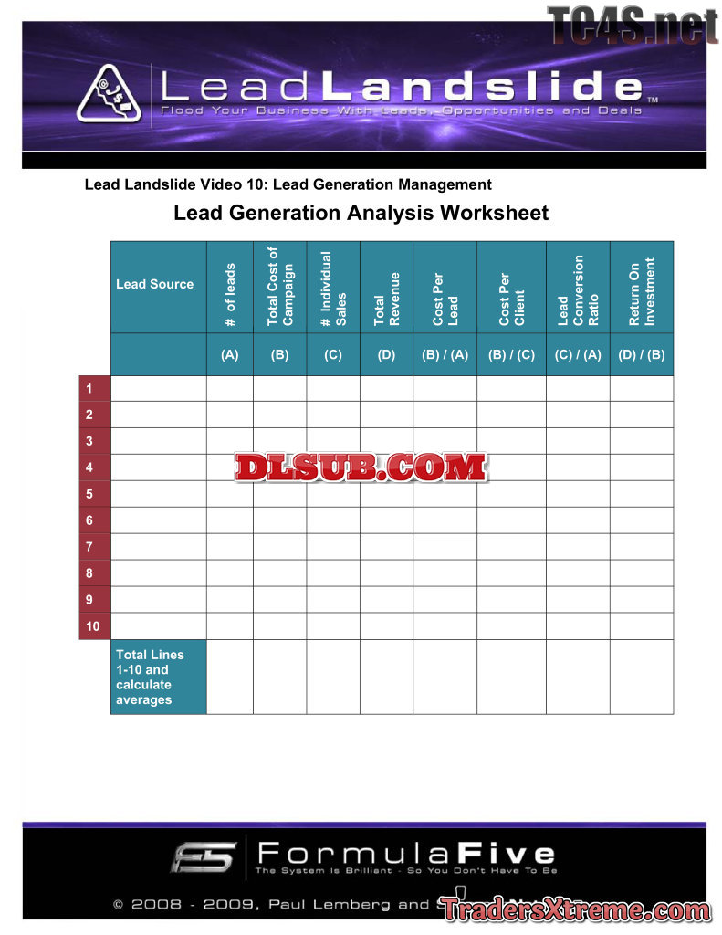 Ll10 Lead Generation Analysis Worksheet - JPG Image File