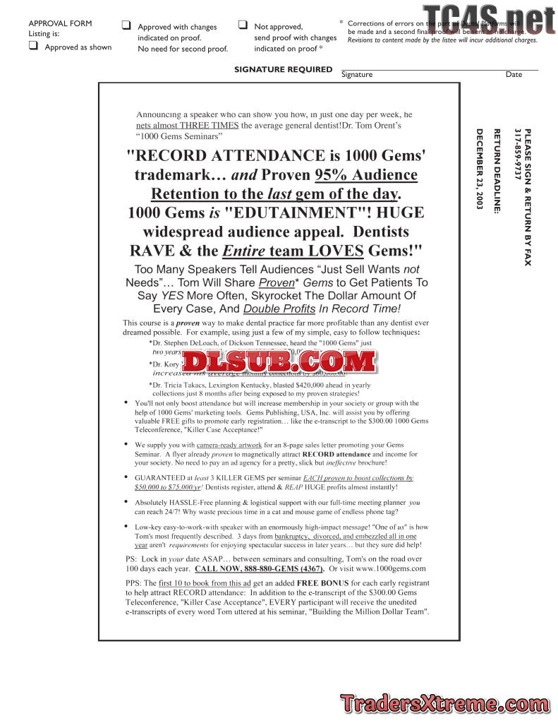 Dental Platforms Orent 1000 Gems 2003 Card Stock Ad - JPG Image File