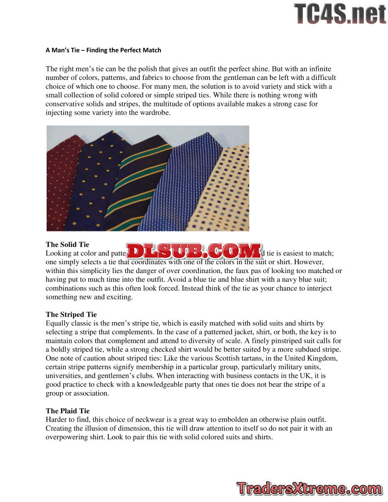 A Mans Tie Finding The Perfect Match - JPG Image File