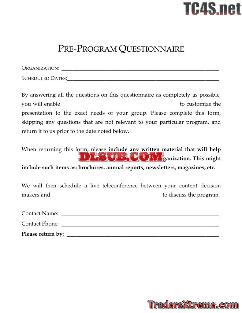 Pre Program Questionnaire Writable Template - JPG Image File