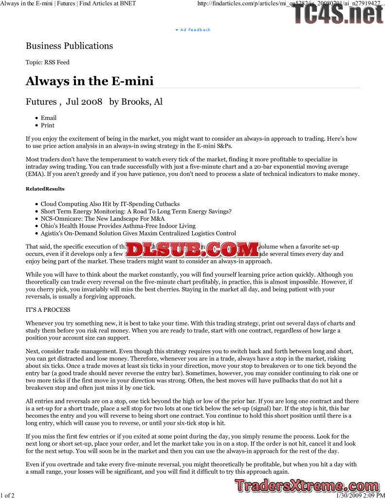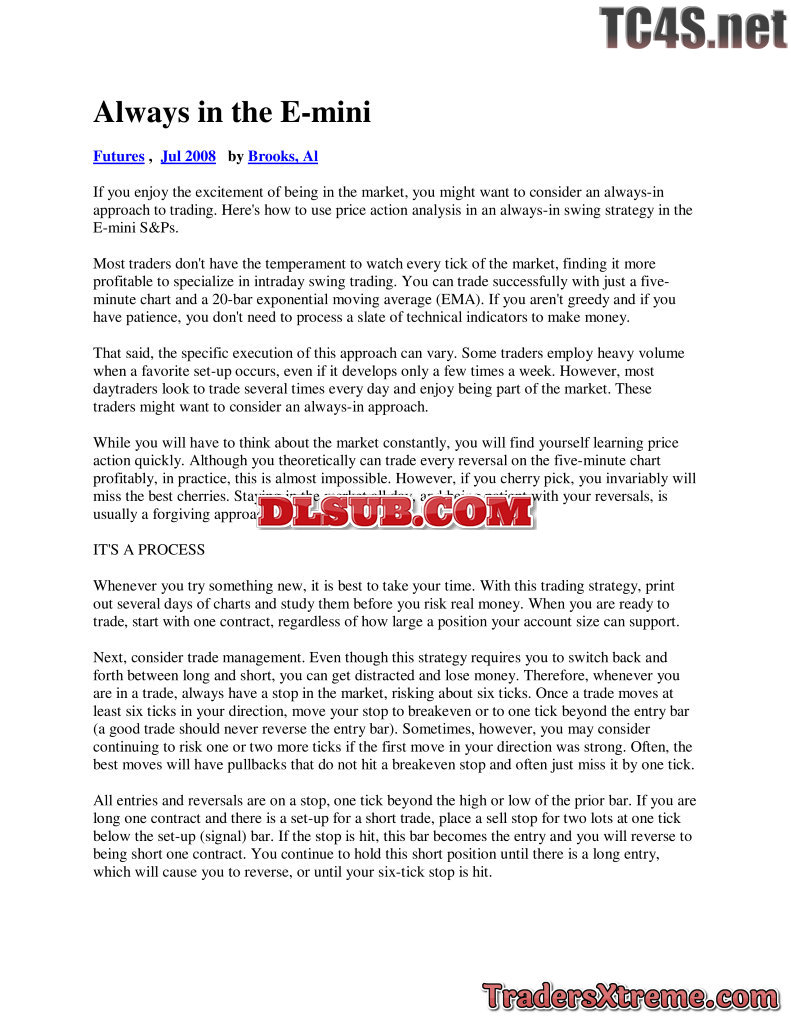 Al Brooks Always In The E Mini - JPG Image File