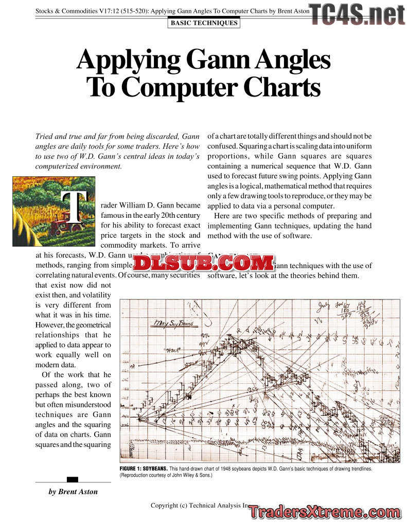 Aston Brent Applying Gann Angles To Computer Charts - JPG Image File