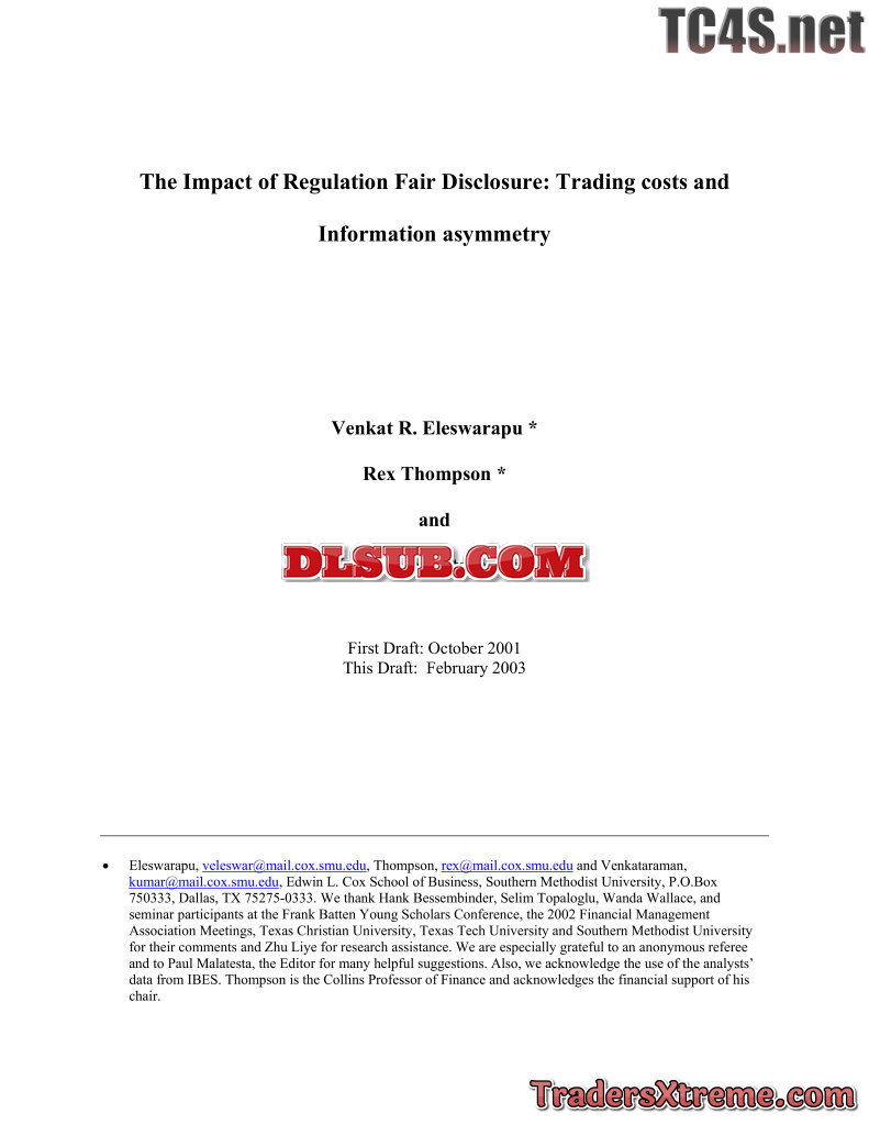 Eleswarapu Thompson And Venkataraman The Impact Of Regulation Fair Disclosure Trading Costs And Information Asymmetry - JPG Image File