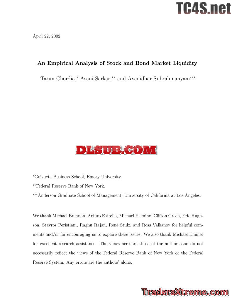 Chordia Sarkar And Subrahmanyam An Empirical Analysis Of Stock And Bond Market Liquidity - JPG Image File