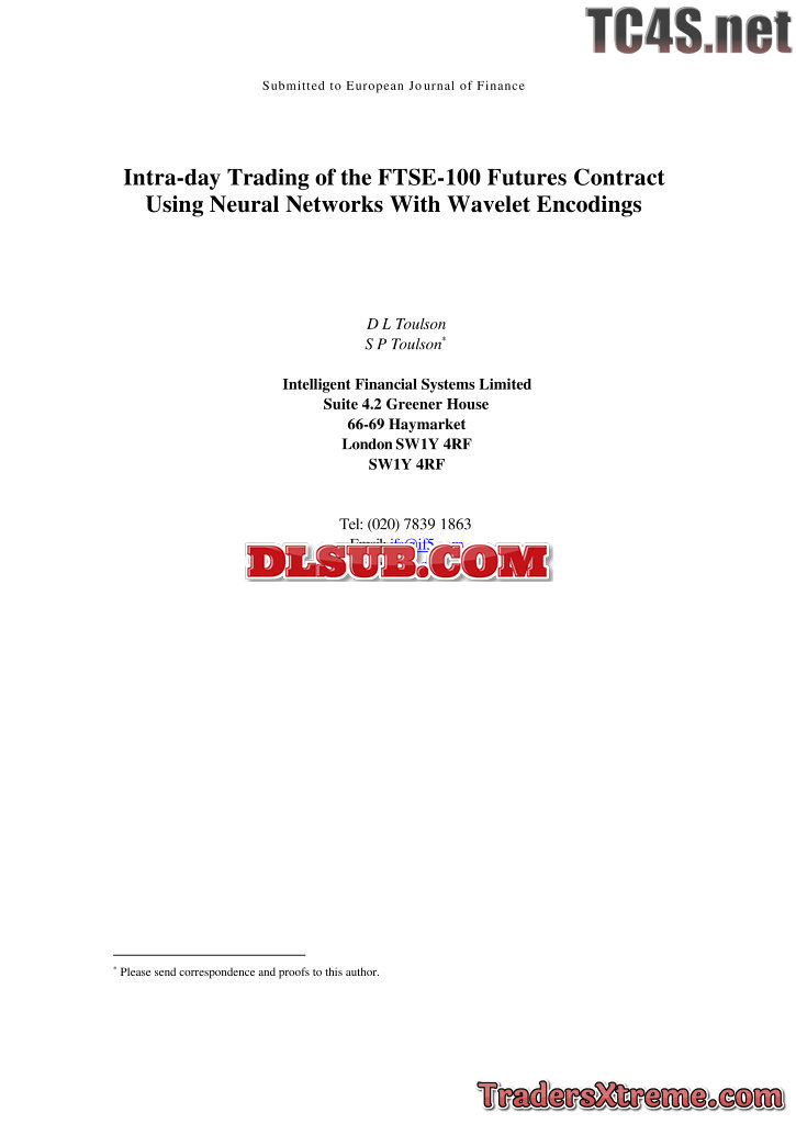 Intra Day Trading Of The Ftse 100 Futures Contract Using Neural Networks With Wavelet Encodings - JPG Image File