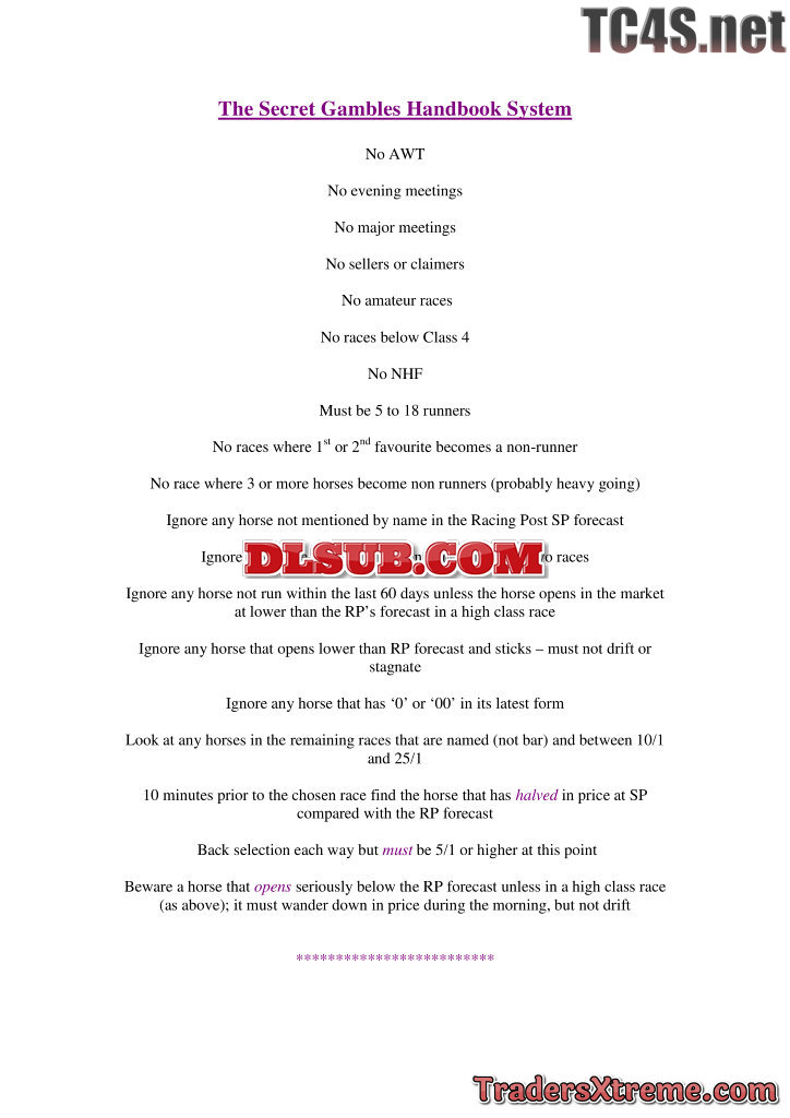 The Secret Gambles Handbook System Precis - JPG Image File