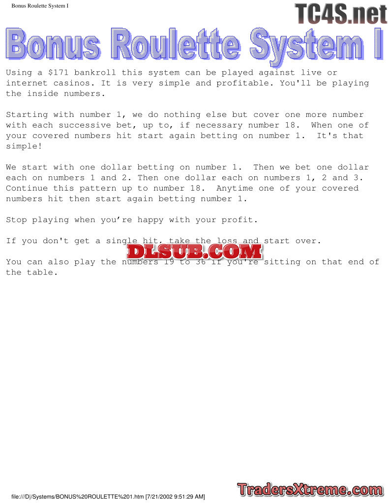 Bonus Roulette System I And Ii