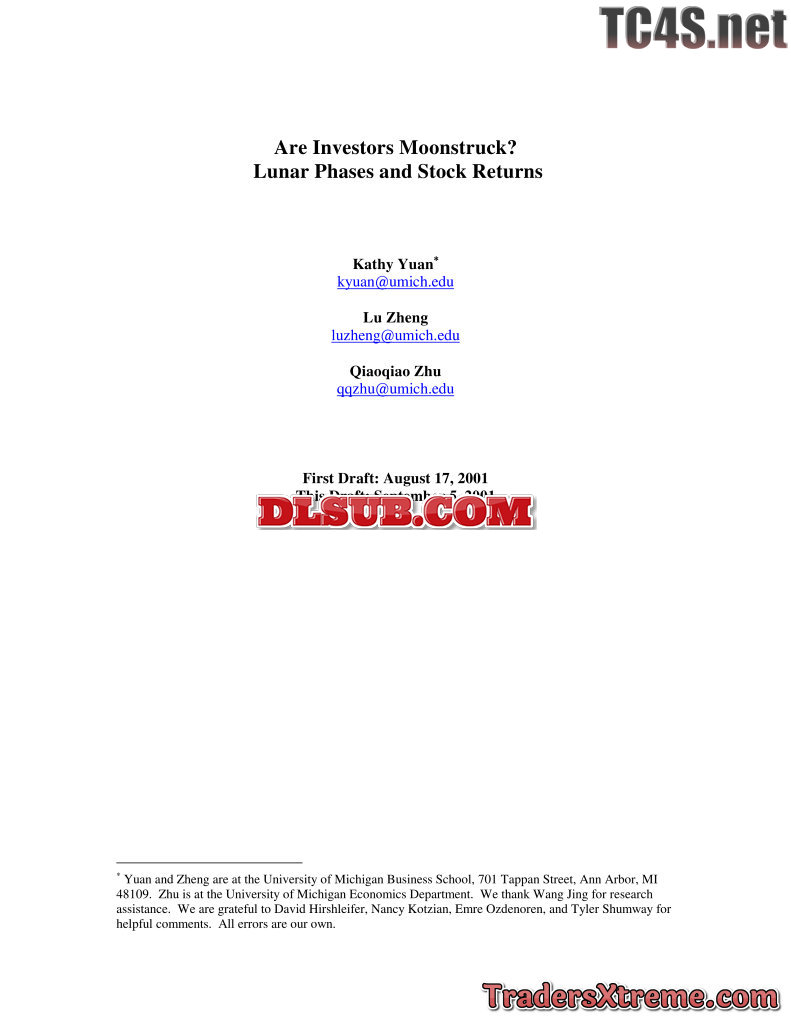 Kathy Yuan Lunar Phases And Stock Returns