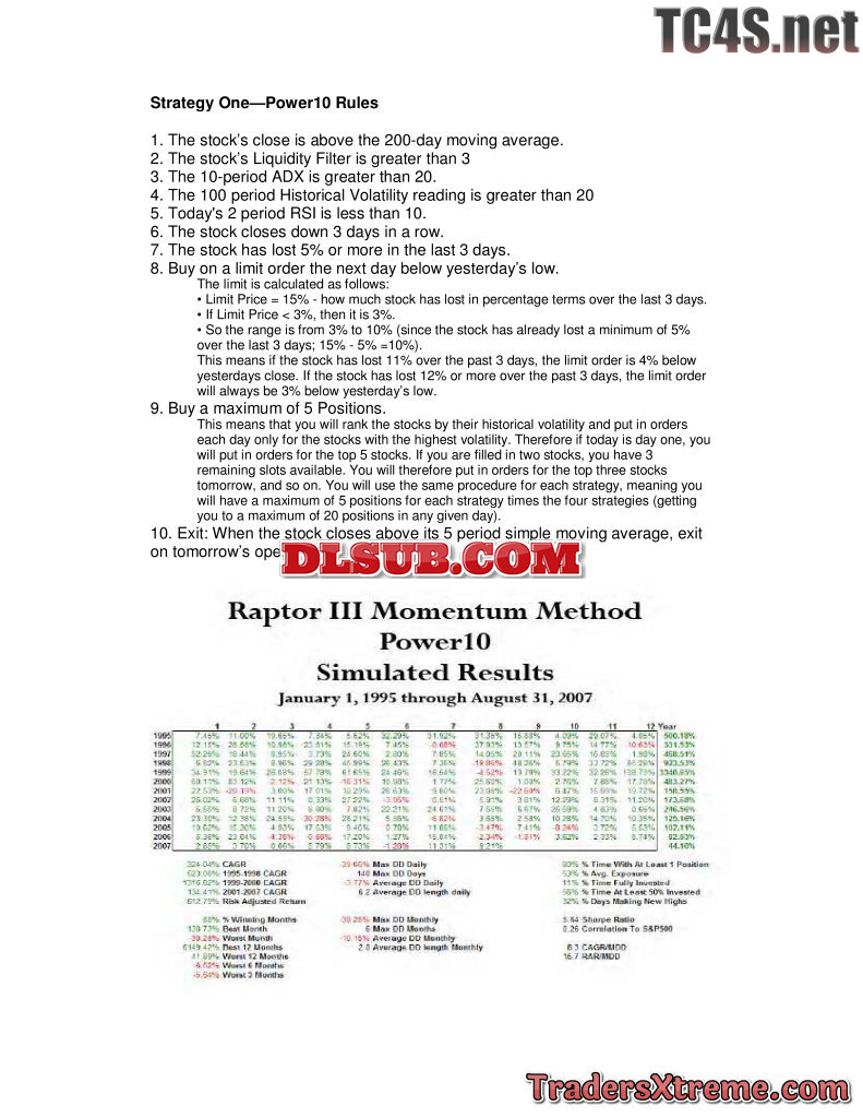 Larry Connors Raptor Iii System Rules And Super System Spreadsheet Chairmans Club System