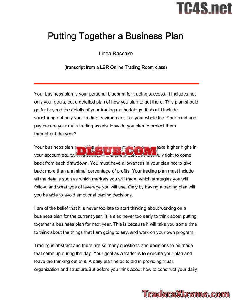 Linda Raschke Putting Together A Business Plan