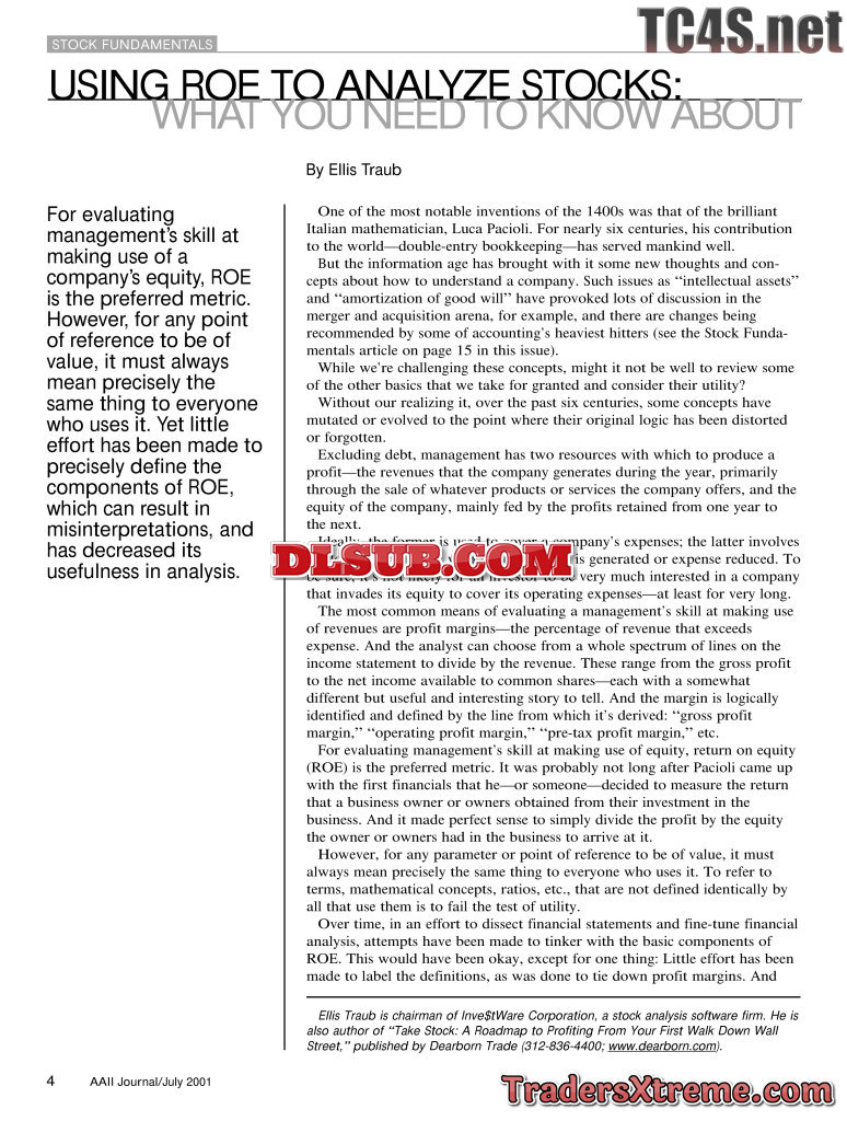 Traub Ellis Using Roe To Analyze Stocks What You Need - JPG Image File